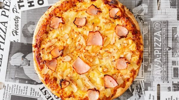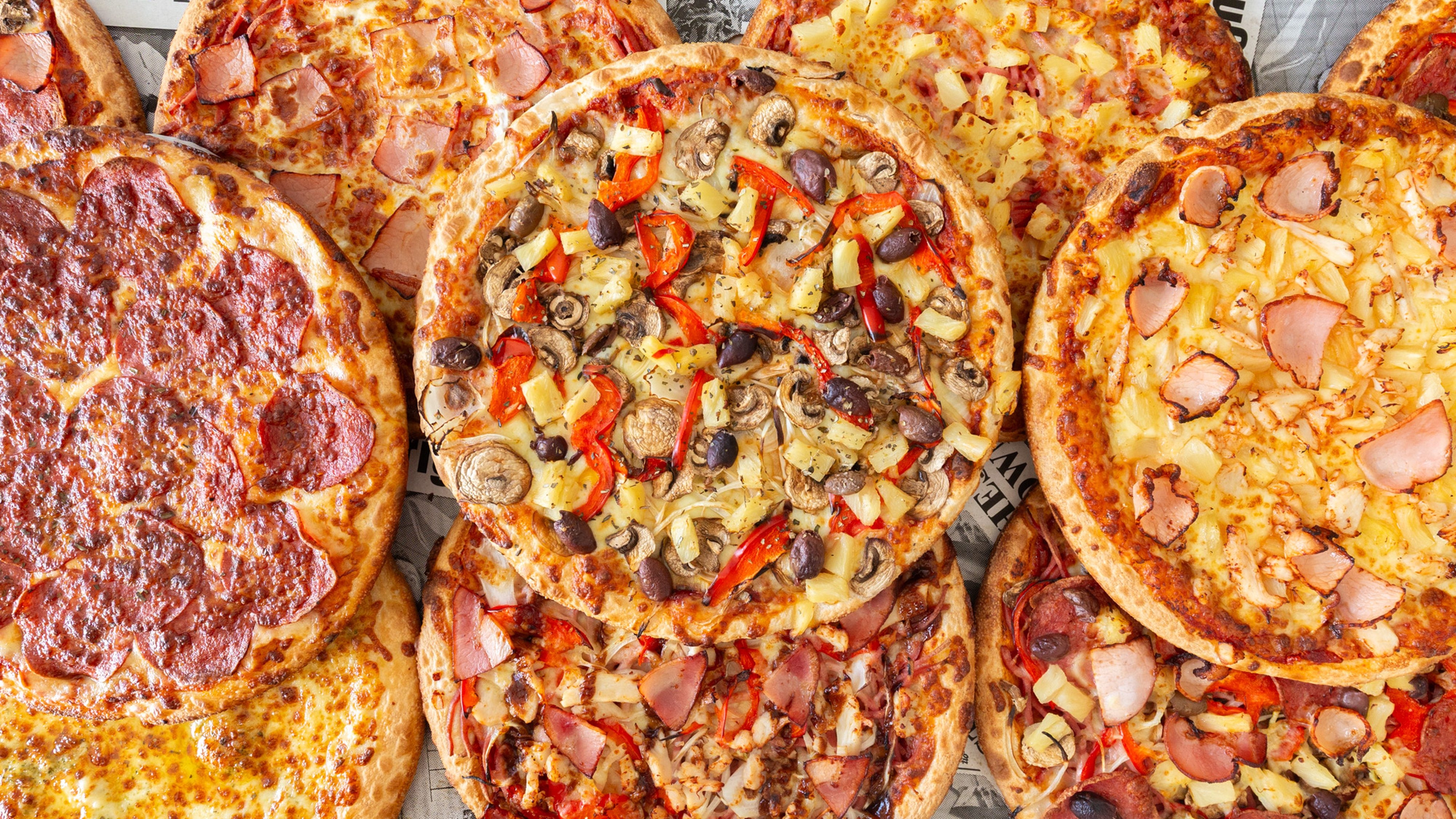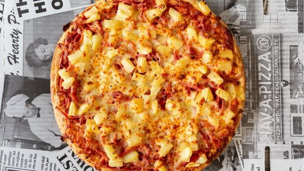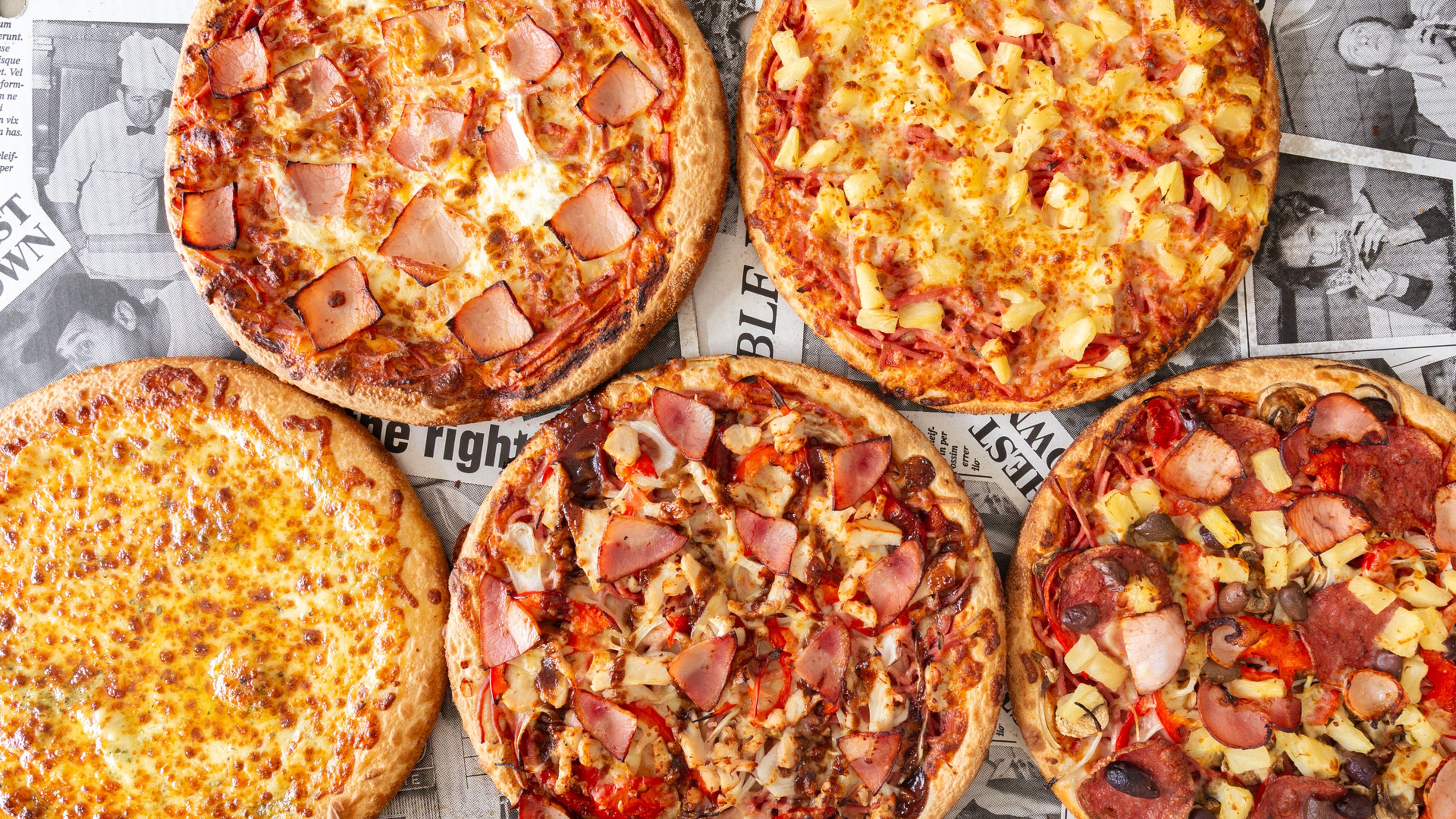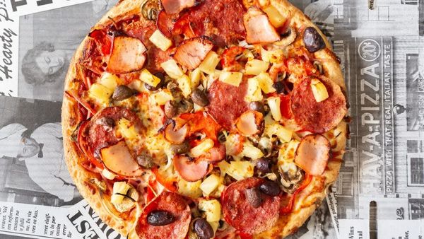 Ham, mushroom, salami, capsicum, onion, bacon, olives and pineapple.