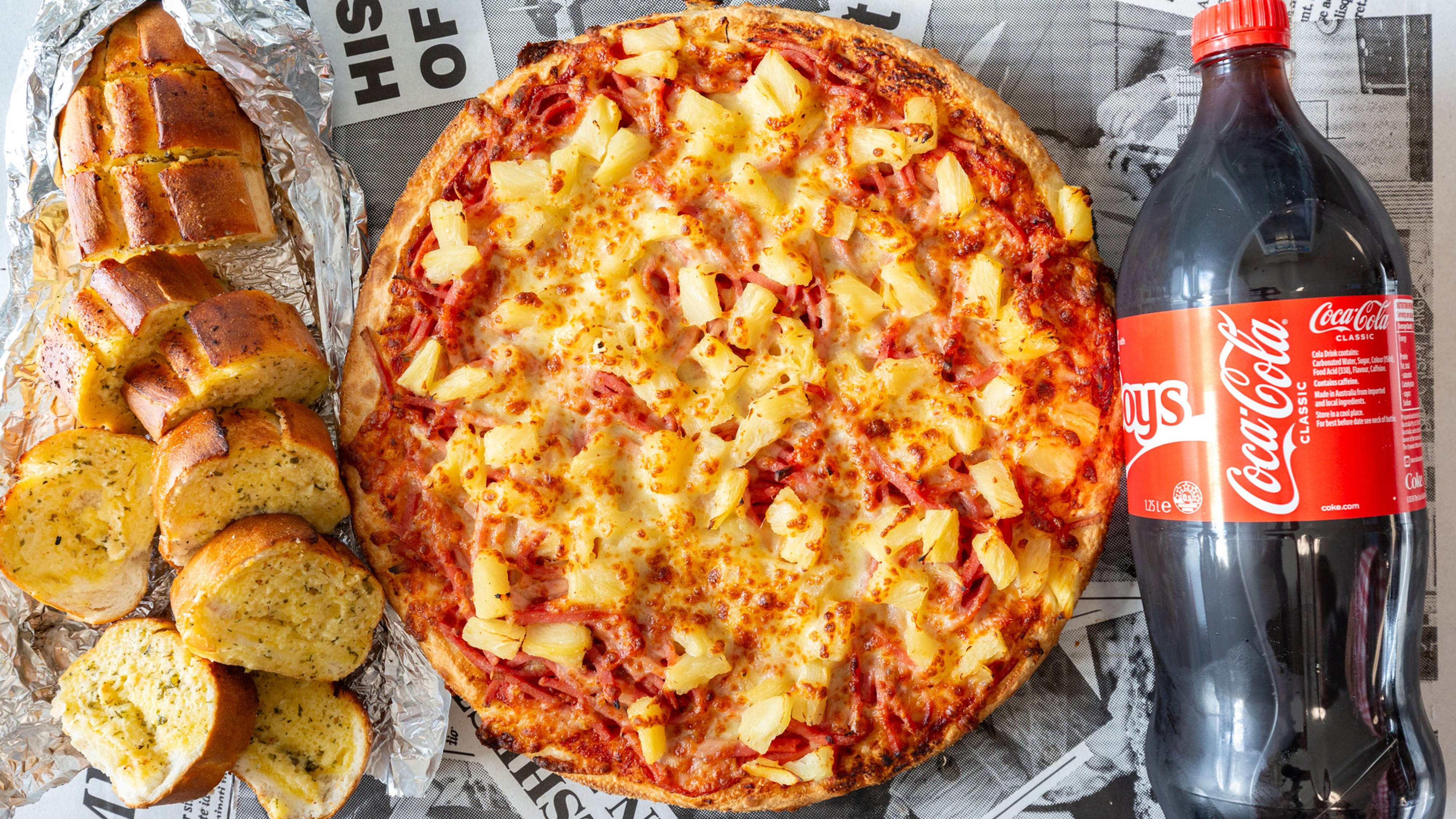 1 large pizza, 11 inch garlic bread, and 1.25L drink