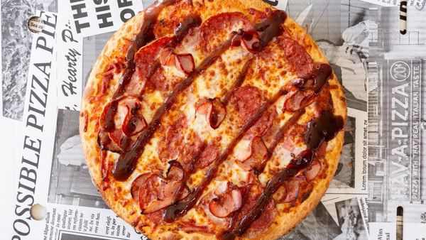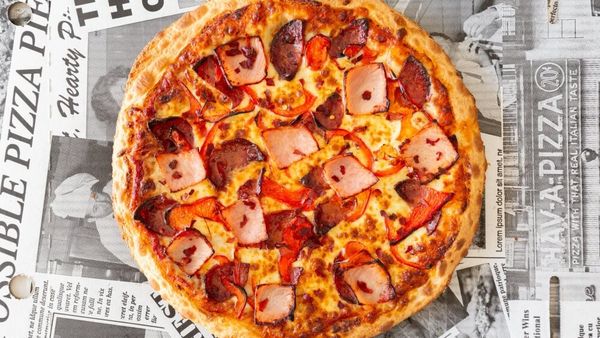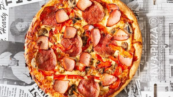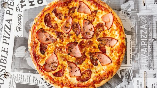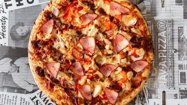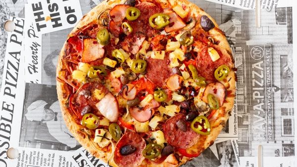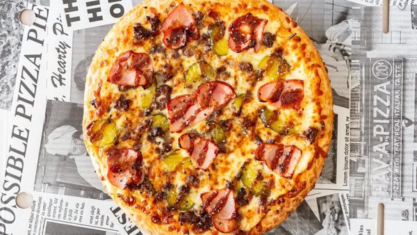 Tomato Base, Ham, Hickory Smoked Bacon, Hot Salami, Fresh Red Capsicum, Jalapenos, Mushroom, Olives, Onion, Pineapple, Mozzarella Cheese and Chilli.