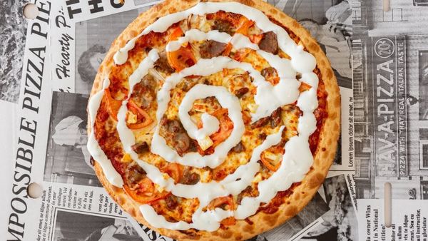 Fresh Tomato, Cheese, Roasted Capsicum, Onion, Seasoned Lamb, Fetta, Tzatziki Sauce, Tomato Base.