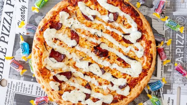 *With Free Jolly Rancher Lollies* Roasted Chicken, Onion, Hot Salami, Ranch Sauce, Mozzarella, Tomato Base.