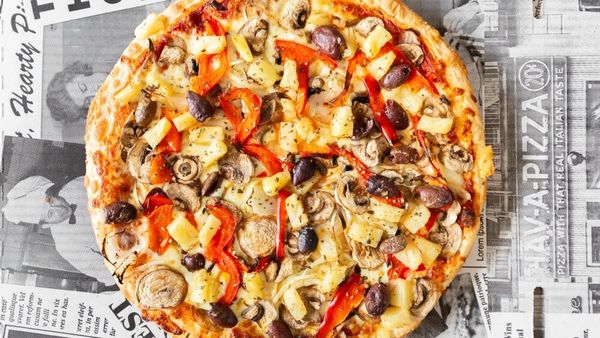 Mushroom, capsicum, onion, pineapple, olives and oregano.